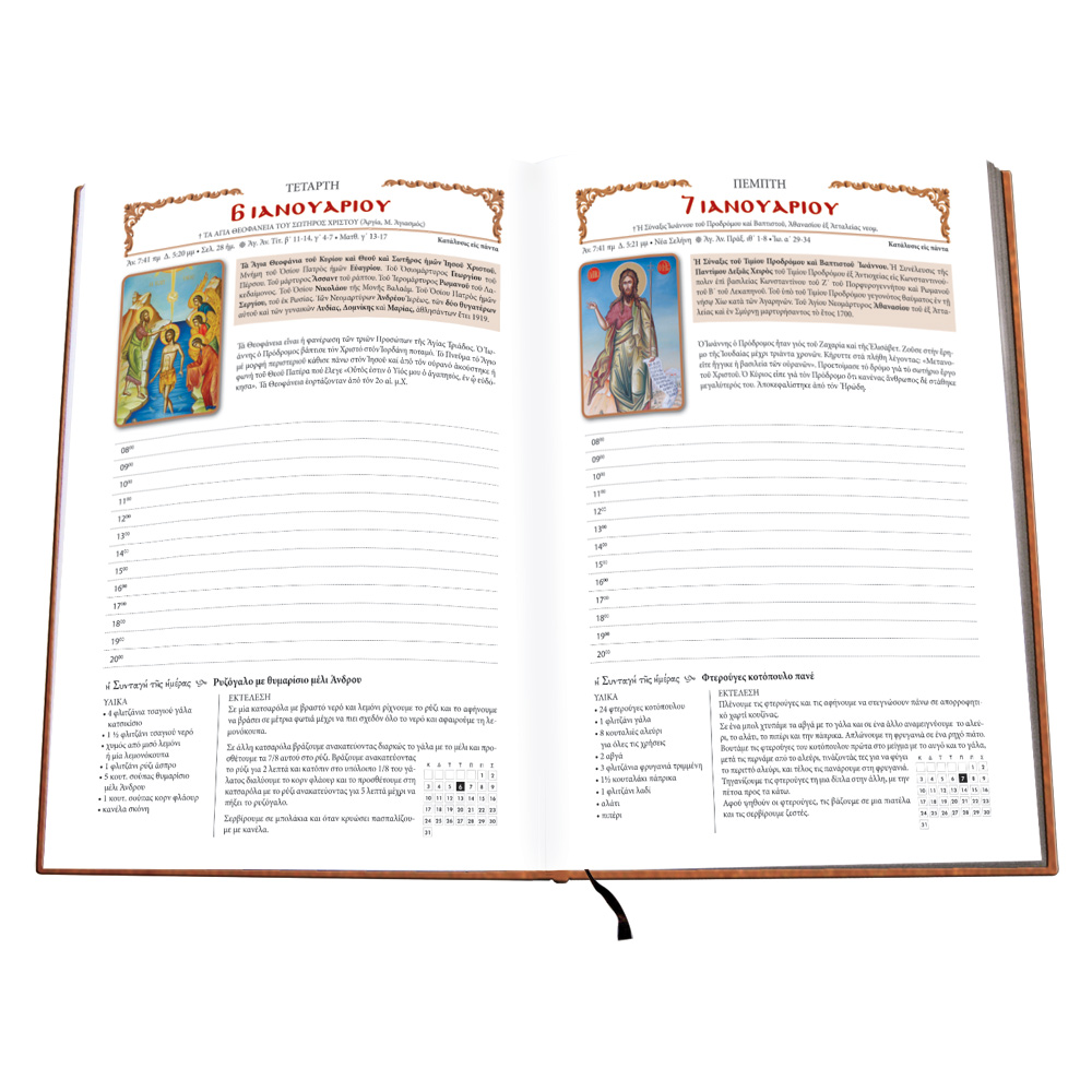 Ημερήσιο Αγιολόγιο – Ημερολόγιο έγχρωμο, με χαρτόδετο εξώφυλλο διαστάσεων 21 Χ 29 εκ.